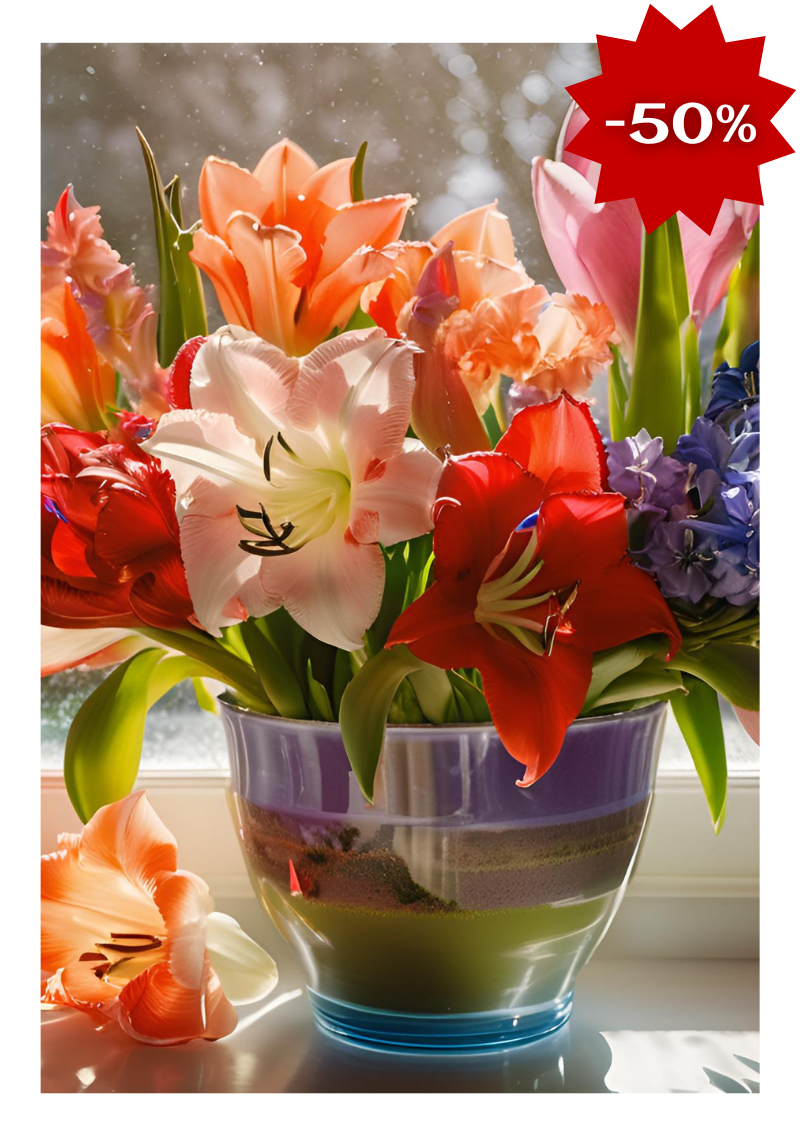Наші цибулинки виведені шляхом багатьох селекцій, завдяки цьому ці квіти чудово квітнуть взимку, та гарно переносять різні перепади температур!
